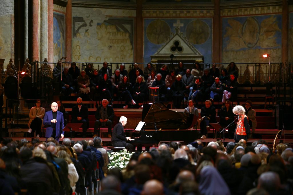 Branduardi e Cazzullo in Basilica con “Francesco”: musica e voce tra gli affreschi di Giotto