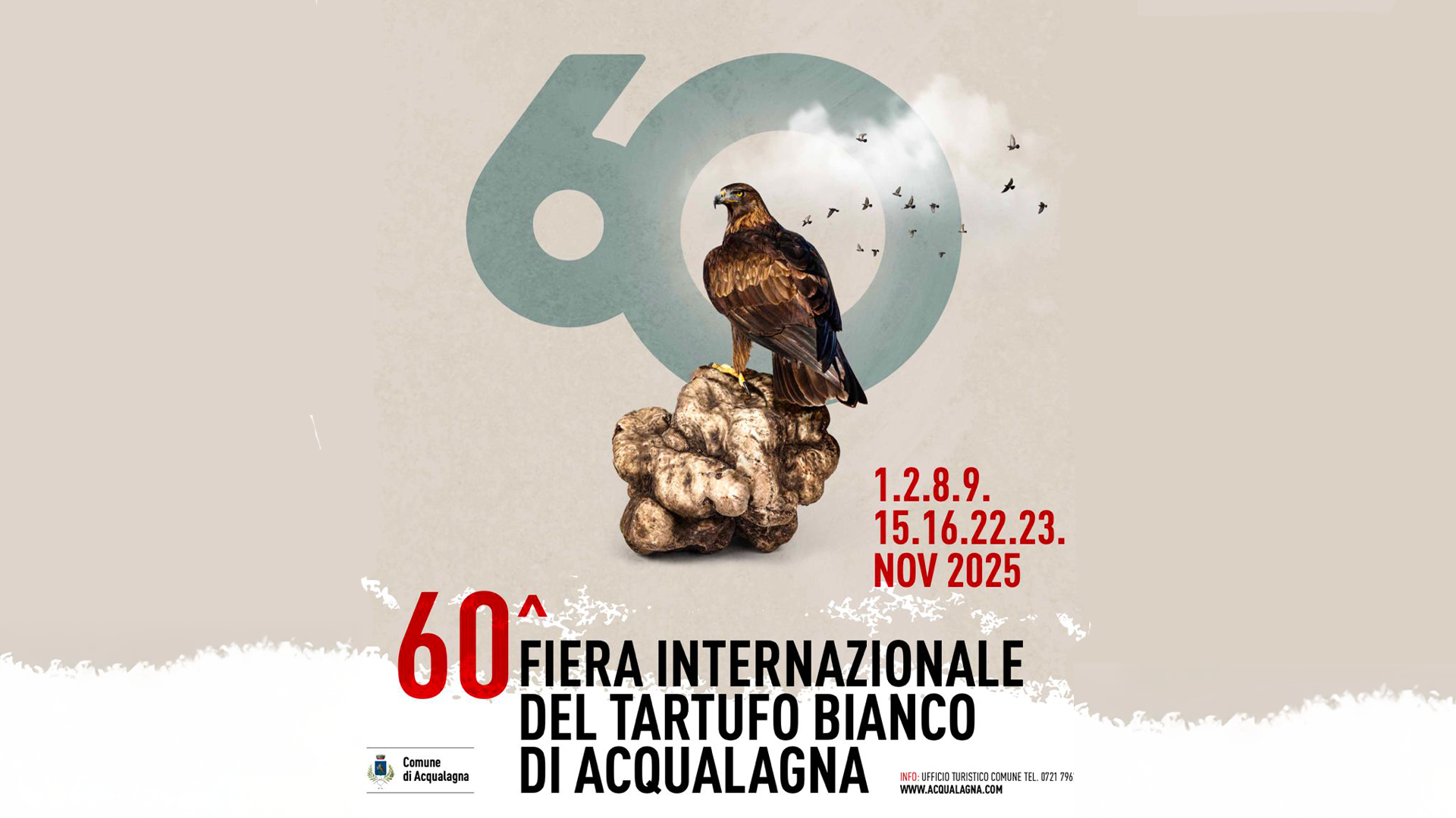 Con la 60° Fiera Internazionale del Tartufo BiancoAcqualagna torna a celebrare sua Maestà il Tartufo nei giorni 1.2.8.9.15.16.22.23 novembre.
